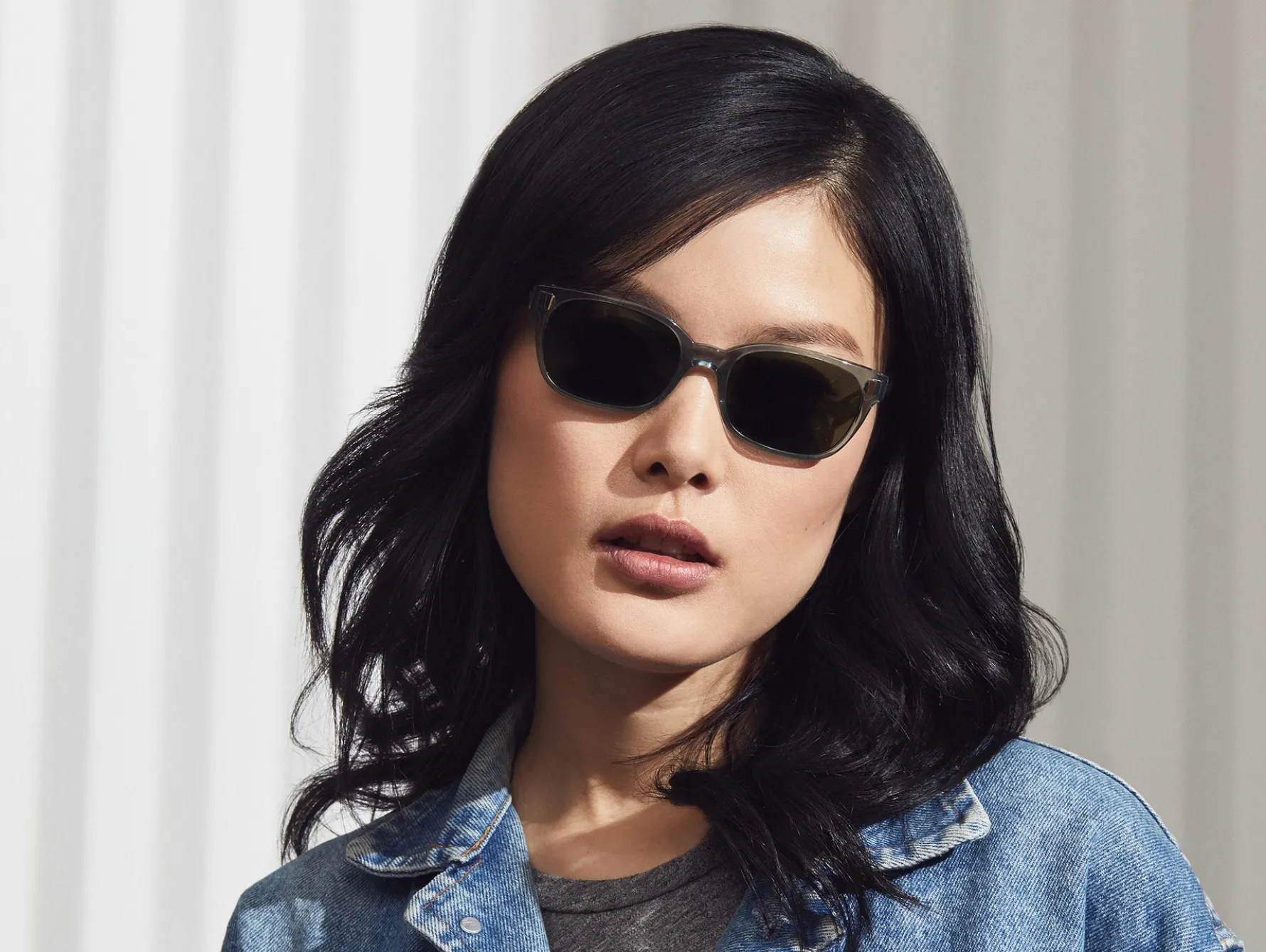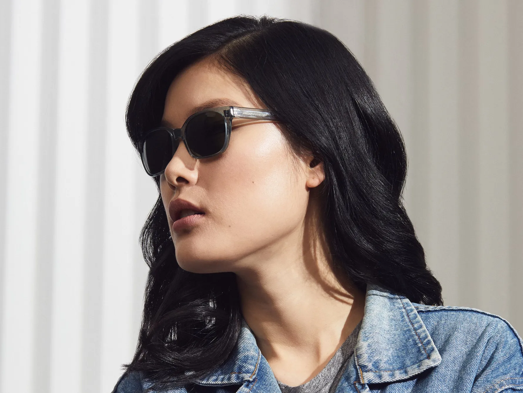- Model is wearing The EMIS SUN in size 52 in Blue Smoke