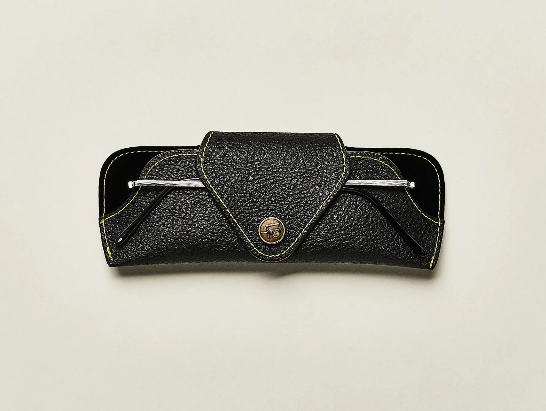 - Exclusive MOSCOT pushcart button and signature yellow stitching